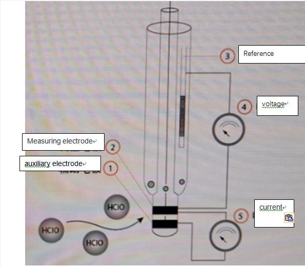 恒电压电极用于测量水体中余氯、二氧化氯、臭氧。恒电压测量方法是在电极测量端保持一个稳定的电位势,不同的被测成份在该电位势下产生不同的电流强度。它由两个铂金电极与一个参比电极组成一个微电流测量系统。流经测量电极的水样中余氯、二氧化氯、臭氧会被消耗掉,所以,测量时必须保持水样连续不断流过测量电极。